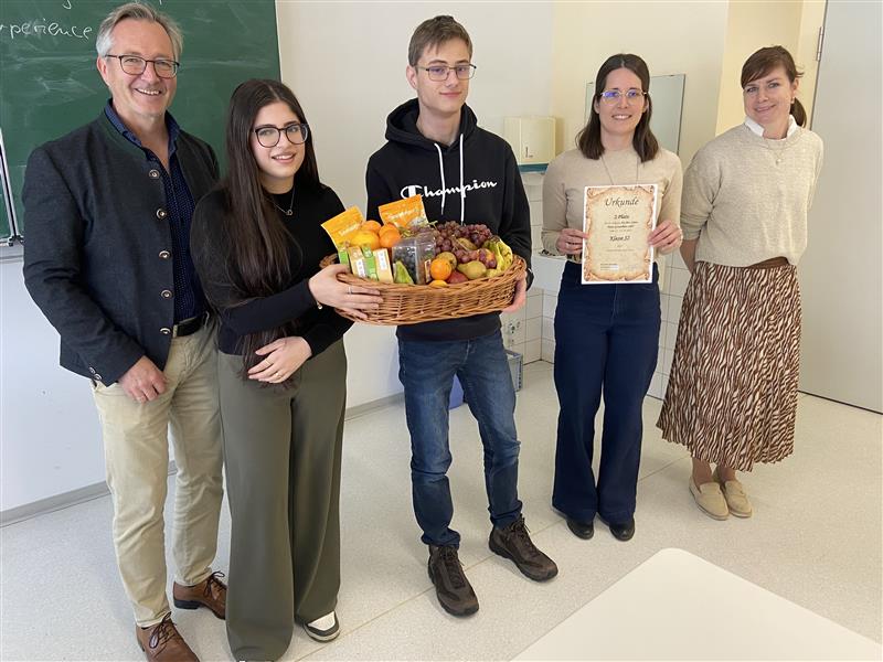 Die Klasse 13S1/G1 sicherte sich gemeinsam mit ihrem Klassenleiter Herrn Weidinger durch ihre hohe Motivation den ersten Platz. Als Belohnung durfte sie sich im Dezember über ein gesundes Frühstück freuen.