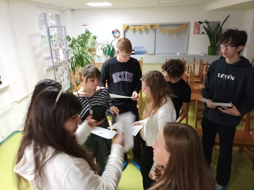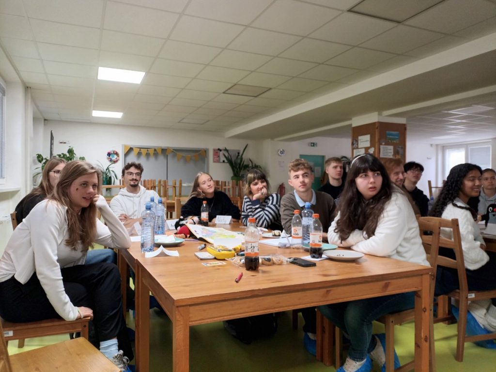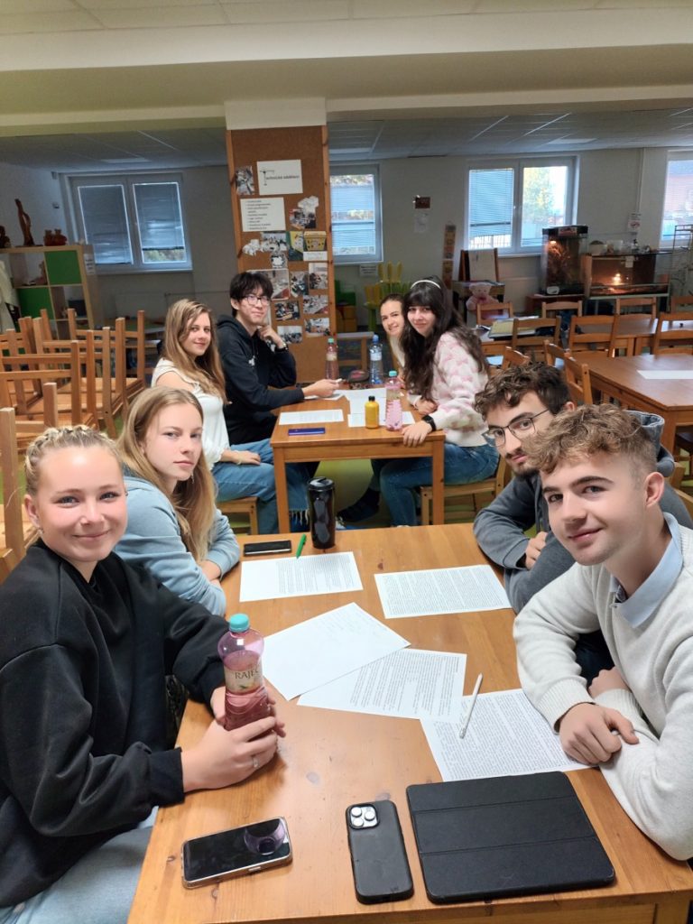 Zusammen mit tschechischen Schülerinnen und Schülern wurde am Montagvormittag in Projektgruppen an Themen zur Landeskunde, Sprache, Kultur und Geschichte Böhmens gearbeitet.
