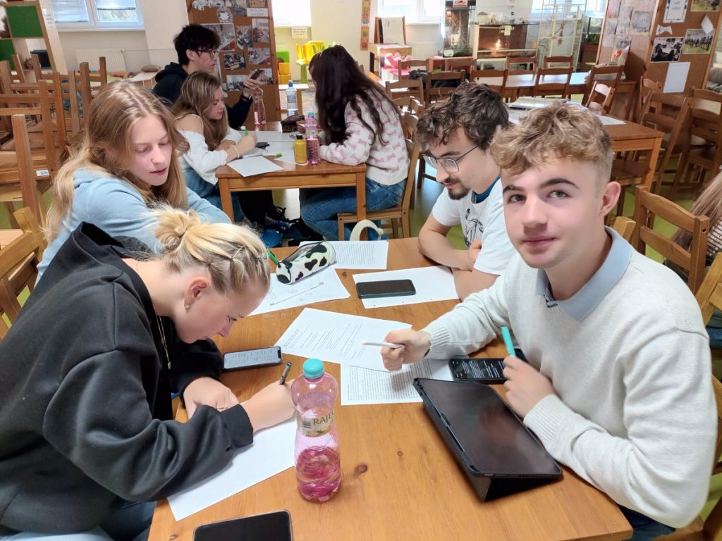Am Dienstag wurde der Projektunterricht fortgesetzt. In gemischten deutsch-tschechischen Gruppen beschäftigten sich die Teilnehmerinnen und Teilnehmer des Schüleraustausches intensiv mit geschichtlichen Themen von der Gründung der Tschechoslowakischen Republik bis zur Vertreibung der Sudentendeutschen nach dem Zweiten Weltkrieg.