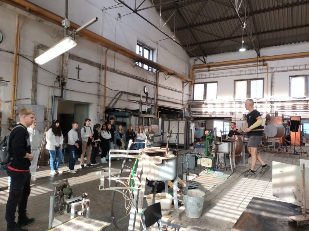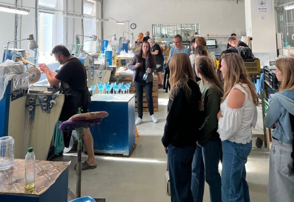 Nachmittags ging es nach Nižbor. Dort wurde uns bei einer Führung in der Glashütte Rückl, die sich auf die Produktion hochwertiger Designerstücke spezialisiert hat, ein Einblick in die Kunst der Glasbläserei und Kristallglasschleiferei gegeben.